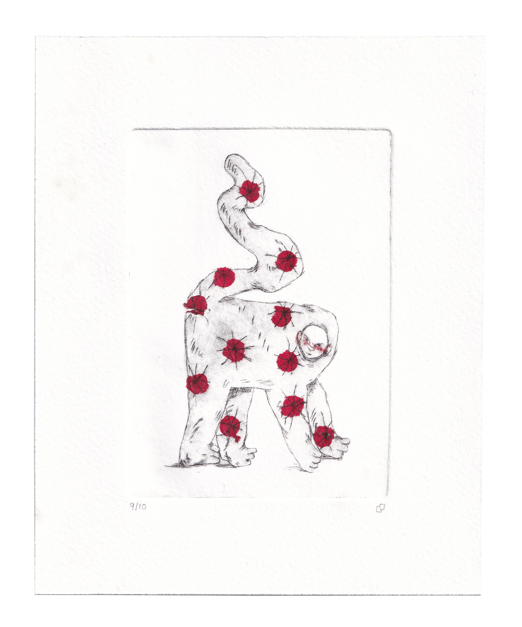 Chine collé dry point etching on paper